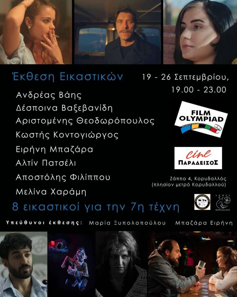 Στον κάτω όροφο μπορούσες να δεις την τέταρτη έκθεση ζωγραφικής του φεστιβάλ, με τίτλο “7 Ζωγράφοι για την 7η Τέχνη”.
