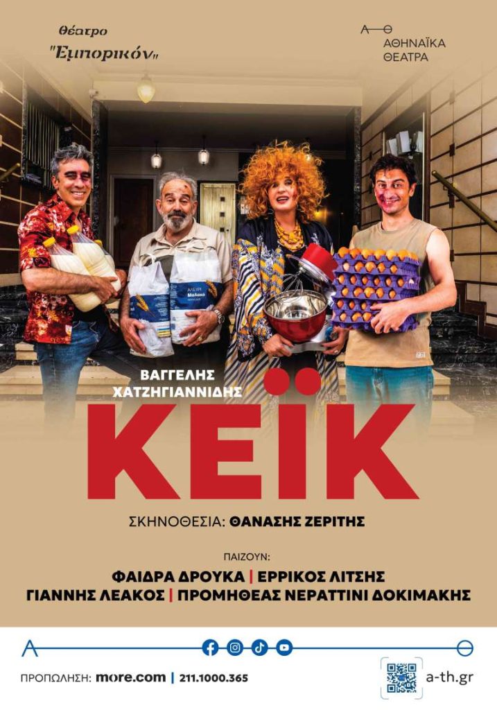 Υπάρχουν κάποιες θεατρικές στιγμές που μοιάζουν με ανάσα. Από αυτές που, όσο κι αν η μέρα σου ήταν δύσκολη, τελειώνουν με μια γλυκιά υποσημείωση. Μια τέτοια στιγμή ήταν η παράσταση «ΚΕΪΚ» του Βαγγέλη Χατζηγιαννίδη στο Θέατρο Εμπορικόν – ή αλλιώς, η ιστορία μιας πολυκατοικίας που γίνεται καθρέφτης της καθημερινότητας όλων μας.