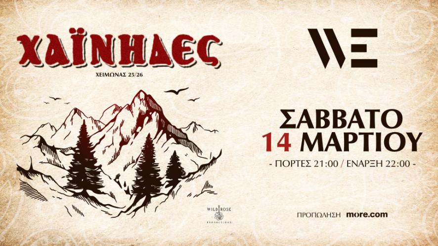 Μια κολεκτίβα αληθινής τέχνης για πάνω από τρεις δεκαετίες, οι Χαΐνηδες έρχονται το Σάββατο 14 Μαρτίου στο WE και υπόσχονται μια συναυλία με παλμό, συγκίνηση και απρόβλεπτες εναλλαγές!