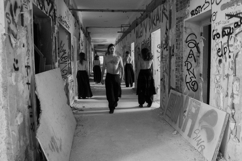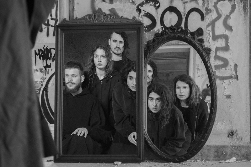 Η σκηνοθετική ματιά των Μιχαέλας Αντωνίου και Βάσιας Σκιαδά κινείται με συνέπεια προς μια ποιητική αφαίρεση, βυθίζοντας τη σκηνή σε ένα σχεδόν τελετουργικό μαύρο, όπου οι καθρέφτες δεν λειτουργούν απλώς ως σκηνικά ευρήματα αλλά ως πολλαπλά βλέμματα πάνω στην εύθραυστη ταυτότητα του ήρωα. Οι ηθοποιοί εναλλάσσονται διαρκώς στους ρόλους, παραδίδοντας ο ένας στον άλλον τον λόγο με μια ροή γρήγορη και μουσική, που σε στιγμές θυμίζει συλλογικό μοιρολόι. Εκεί όπου οι φωνές ενώνονται, η παράσταση αγγίζει συνειδητά τον απόηχο του αρχαίου χορού και εντείνει το αίσθημα μιας κοινότητας που παρακολουθεί και άθελά της σφραγίζει τη μοίρα του Μήτρου. Οι δουλειές σε φωτισμούς και μουσική αποδεικνύονται καθοριστικές, υφαίνοντας ένα πυκνό ηχητικό και οπτικό πέπλο, που σε παρασύρει σχεδόν υπνωτικά.